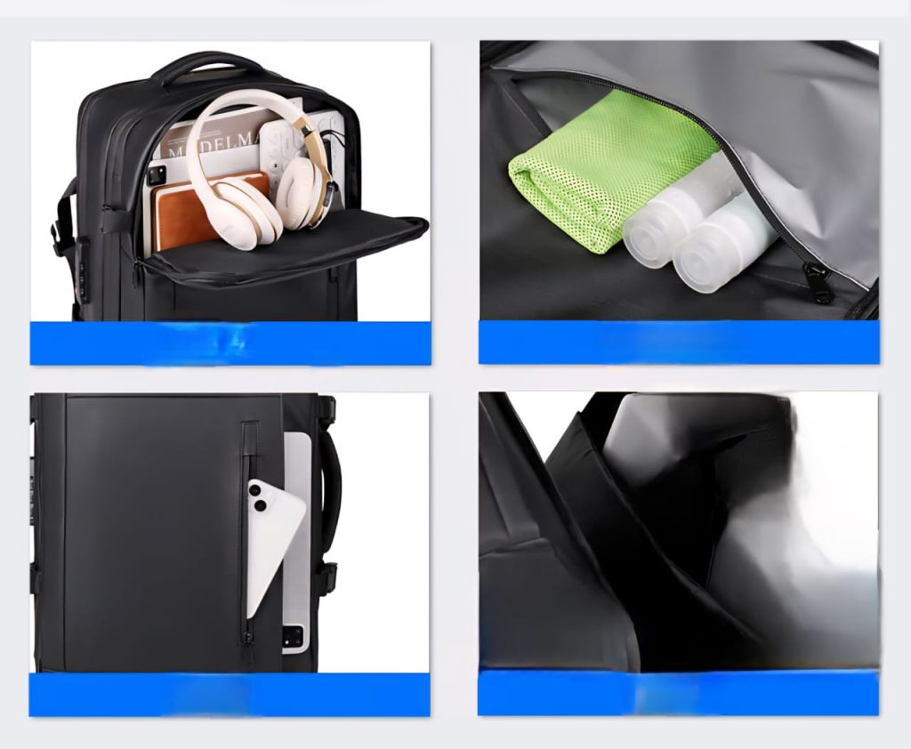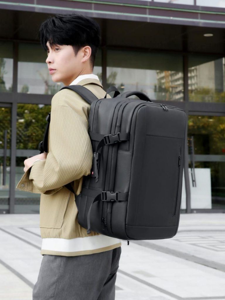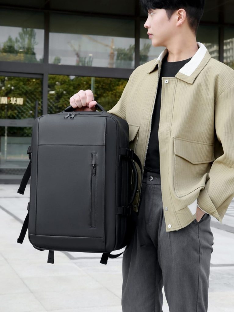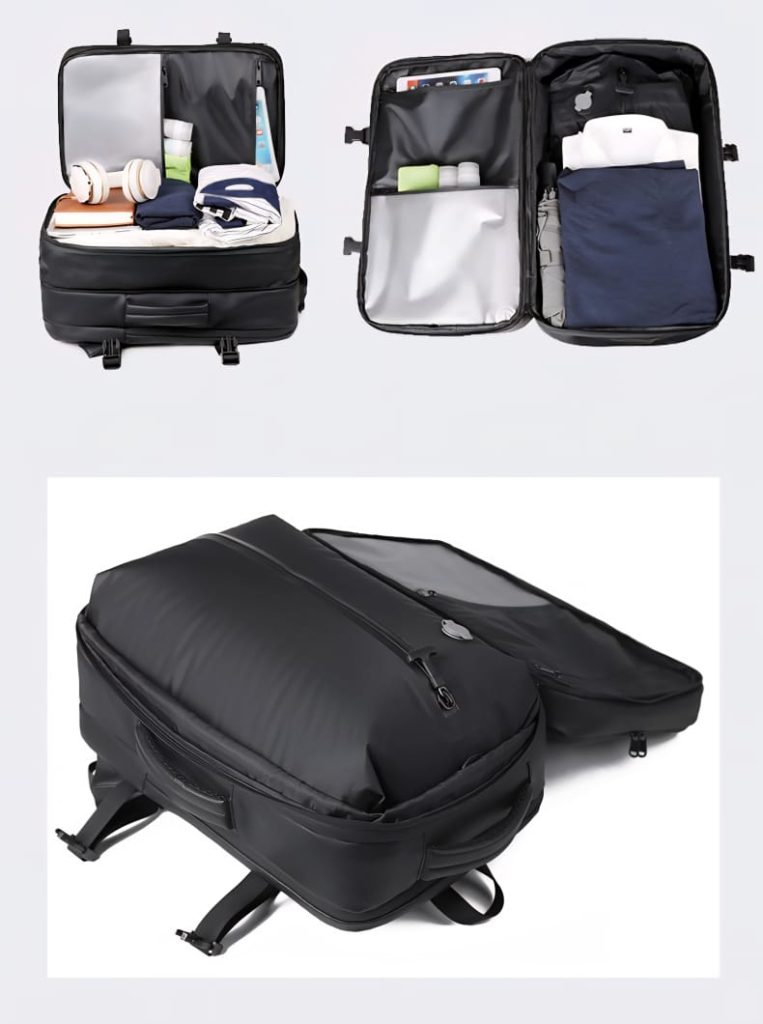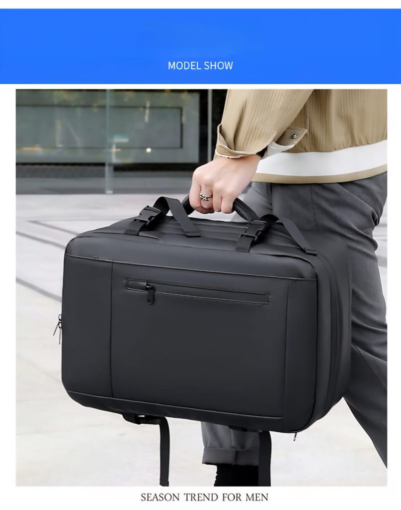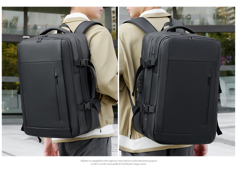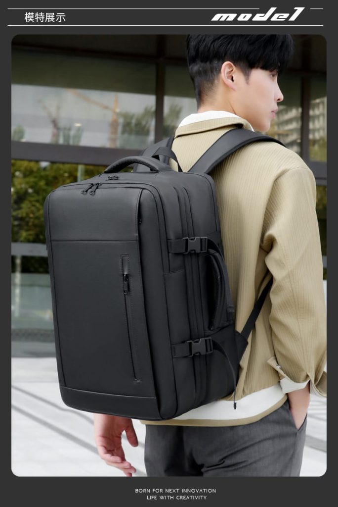 Multifunctional 45L Expandable 17″ Laptop Backpack, Waterproof Travel bag with multiple compartments for convenient organization of your belongings. It is perfect for leisure activities and traveling. The backpack has a spacious interior and is suitable for carrying a 17″ laptop. The backpack is made of durable and waterproof material, ensuring the safety of your belongings even in harsh weather conditions. Upgrade your travel experience with this expandable and multifunctional backpack.